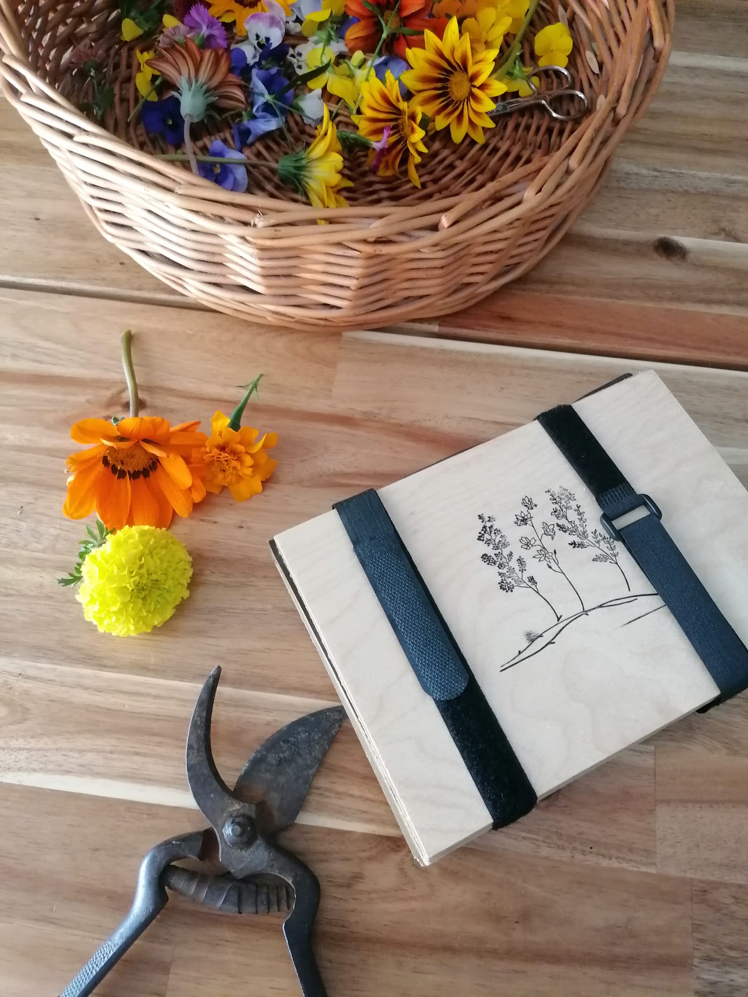 La cargaremos de flores y hojas frescas que llevaré para la ocasión. Así que te llevarás a casa tu prensa llena de tesoros botánicos y además aprendiendo distintas formas de prensado para obtener los mejores resultados.